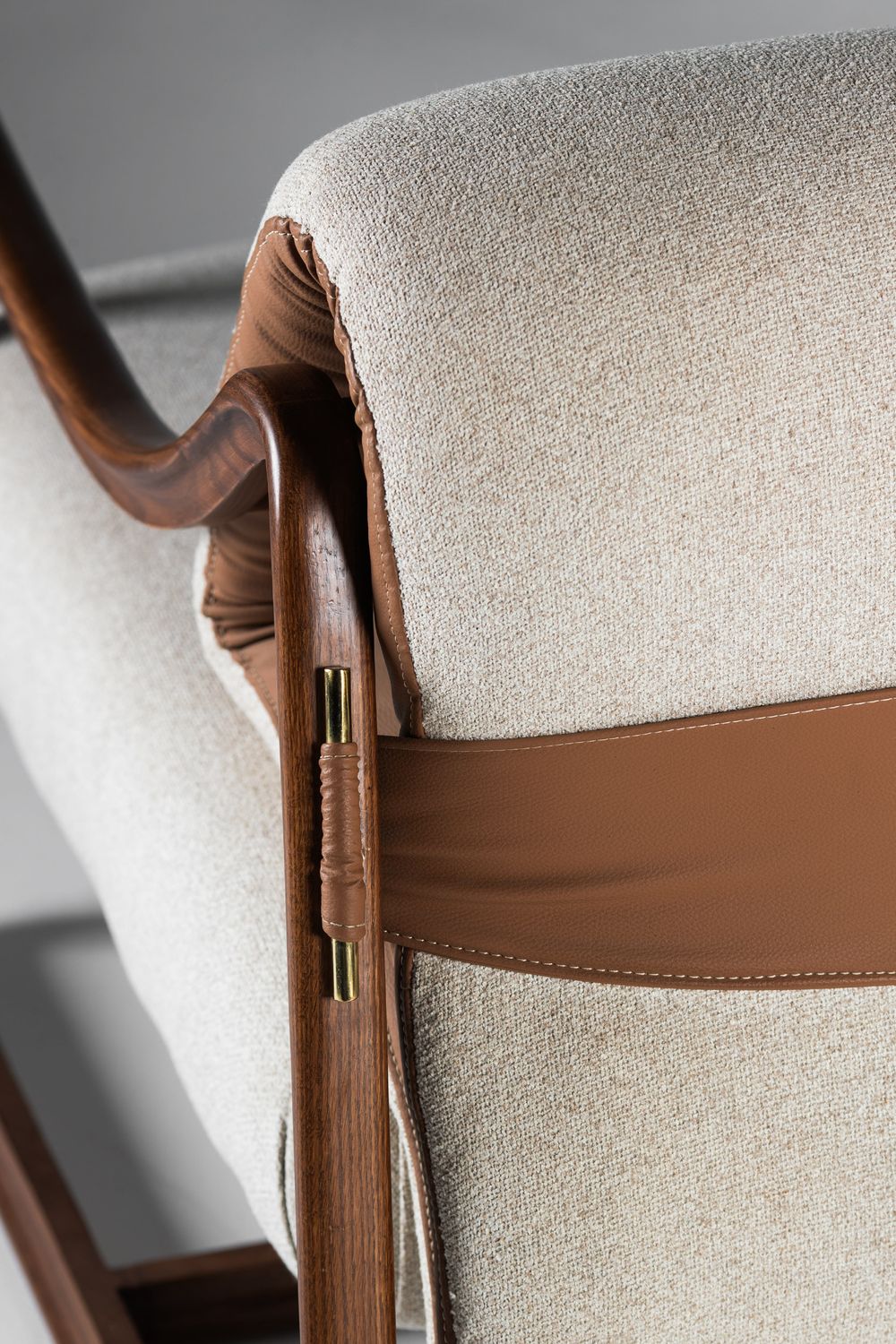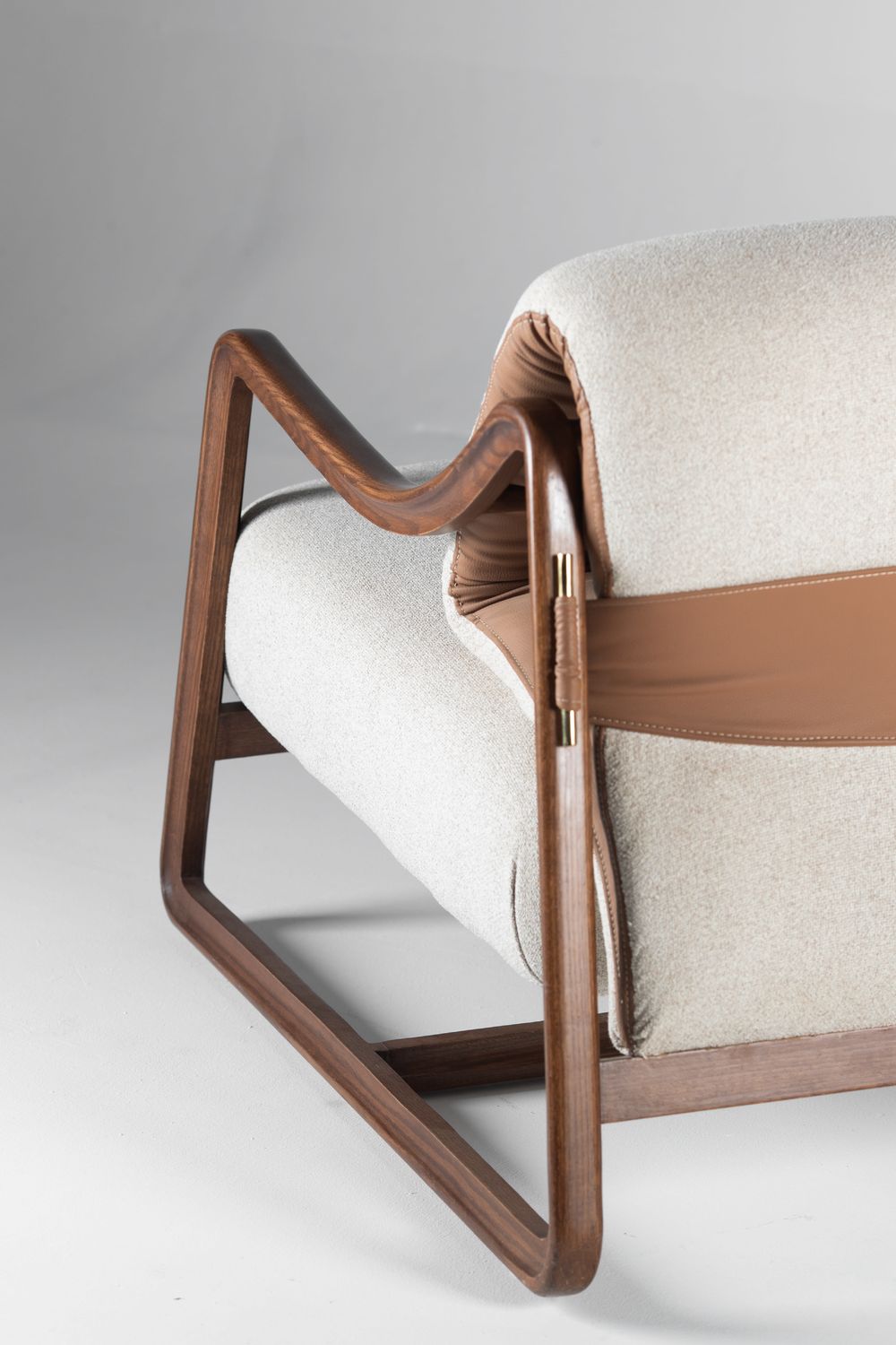 العربية: كرسي “حضن الحرفي” هو تحفة فنية تجسد التناغم بين الحرفية العالية والتصميم المعاصر. يتميز بهيكل خشبي صلب منحني بدفء، يلتف برشاقة ليحتضن المقعد المريح والمبطن بقماش ناعم بلون ترابي فاتح. تبرز لمسة الأناقة في الحزام الجلدي الداعم باللون البني الغني، الذي يضيف عمقاً بصرياً وجمالية فريدة. قطعة مثالية لإضافة طابع راقي ومميز إلى أي مساحة معيشة أو مكتب.